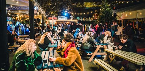 There are loads of indoor and outdoor space, and a variety of street food stalls, a fun live entertainment programme and a huge outdoor screen used for showing international sporting events such as Wimbledon, the Euros and the Olympics.