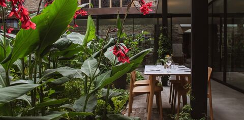 Located in an impressive glass and beaten-bronze pavilion, the restaurant space was designed by Dow Jones Architects, with additional internal layout and design by Tom Benton Architects. The interiors are inspired by its leafy and calming surroundings and on sunny days the courtyard garden is a delightful space to enjoy a fabulous lunch.