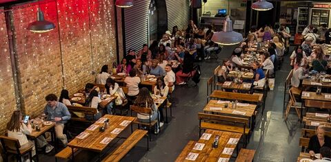 Situated just off the famous Leake Street graffiti tunnel beneath Waterloo Station, Mamuśka occupies a cavernous space inside an old railway arch and is said to be London's biggest Polish restaurant and bar. The decor mixes steel, brick and concrete and has that classic authentic Polish 'milk bar' meets beer hall atmosphere, with the added bonus of a covered terrace area out front.