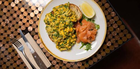Try the Ozdemir Pasha with grilled halloumi, fried eggs, butterbean hummus and sumac with a zing tomato salad on sourdough toast. Or for a sweet start to the day, there's the Brioche French Toast topped with whipped lemon ricotta, black cardamom sugar, blueberry compote and toasted almonds. They also of course serve a classic English breakfast and for something special the 'Black Penny Hashes' are a signature made with a choice of crispy duck, salt beef or wild mushroom and polenta.