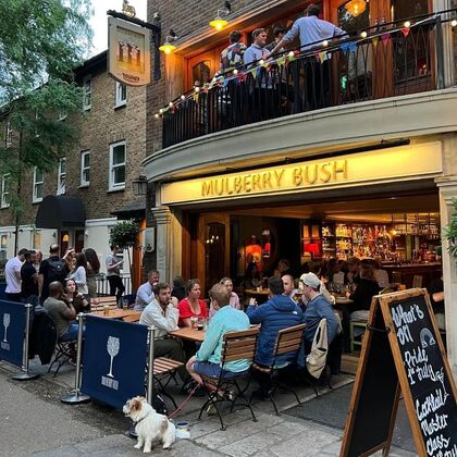 Mulberry Bush is a Young's pub and behind the bar is a choice selection of Young’s cask and local ales. For a more casual lunch stop or afterwork drink there's wine and sharing plates, and of course classic pub food favourites like sausage and mash, burgers and fish and chips.