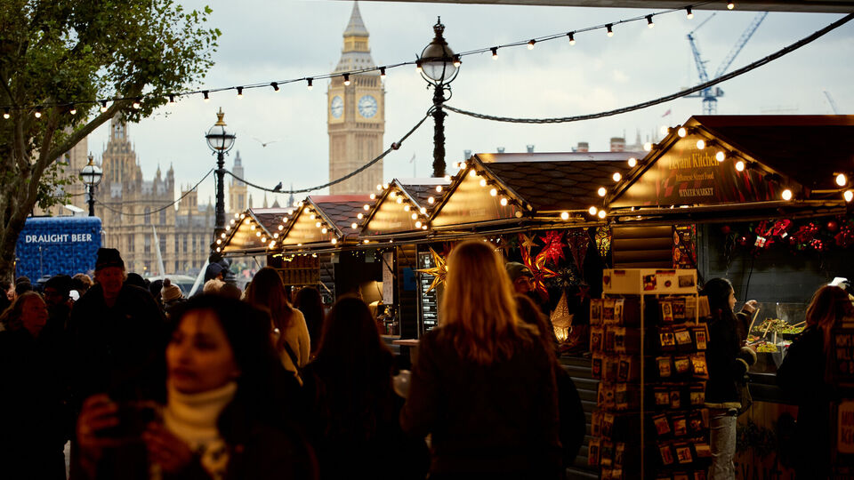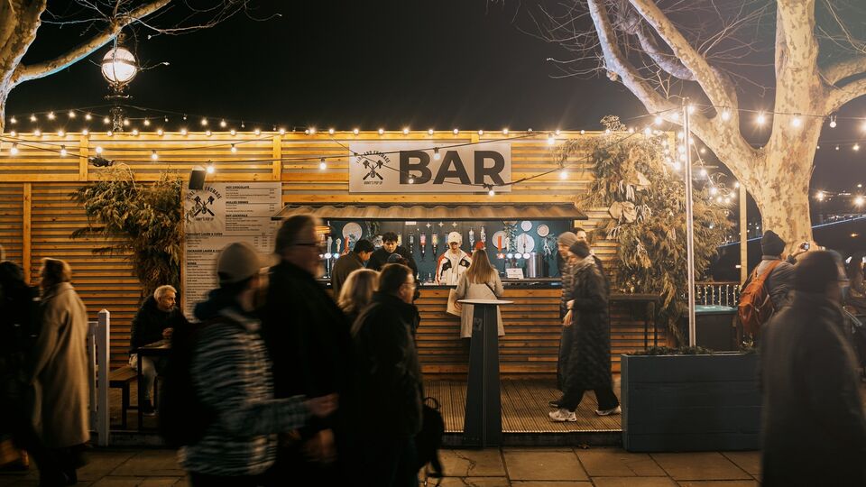 South Bank's newest winter pop-up is Bar Humbug, making its debut under Hungerford Bridge this festive season. The bar styles itself as a festive sing-along bar with a Bavarian twist. Think timber-fronted alpine lodge, steins of beer, fir garlands, fairy lights and the sounds of a crowd singing together. Expect live music, DJs and communal sing-alongs by the piano through to the New Year.