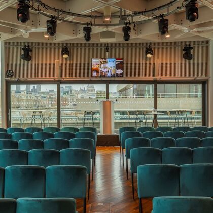 Located on the rooftop of the iconic National Theatre building, the Buffini Chao Deck comes with some serious wow-factor, offering breathtaking panoramic views across London from its wraparound riverside terrace. Wrapped in glazed panels, which can be retracted on warmer days, the space has an uninterrupted view 180 degree view of the river no matter the weather.