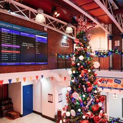 Embark on an adventure into Paddington's world, where the Christmas trees and festive decorations are up in the Brown family home and Windsor Gardens is illuminated with Christmas decorations.