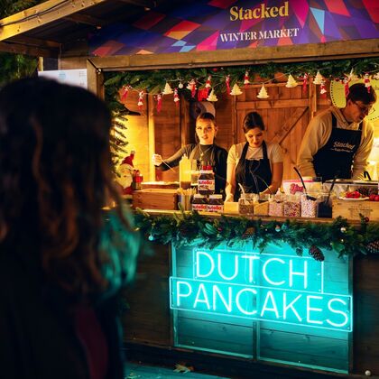 Keep your belly merry with duck wraps, perfect cheeseburgers, baked chicken wings, classic hot dogs, Himalayan dumplings, New Orleans-inspired Po’Boy sandwiches and Yorkshire Pudding wraps. And don’t forget to save room for sweet treats like Dutch pancakes, churros and cookies. When it comes to hot drinks, take your pick from a variety of pop-up bars selling classic winter hot drinks like mulled wine, hot cider and hot chocolate.