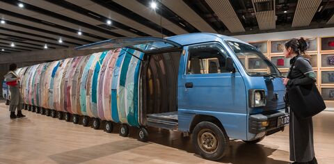 Yin Xiuzhen is renowned for her use of secondhand clothing, concrete, food and household ephemera in her immersive installations and sculptures.
